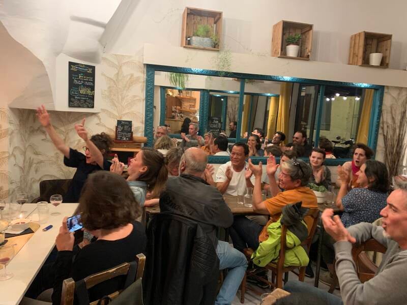 Deux fois par mois, je conte dans le restaurant CQP-Comprend Qui Peut à Montpellier. Seule ou avec Fabrice, je joue le spectacle musical L'Arbre du voyageur pour tout public, à partir de 7 ans.